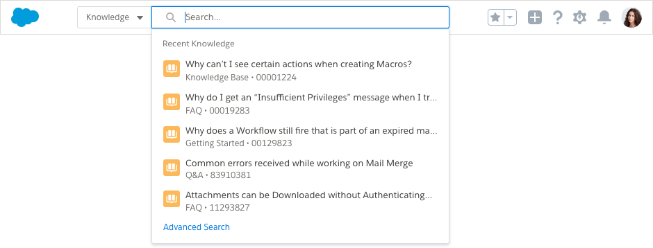 Search is the most used feature in Salesforce, and users expect it to be fast, intelligent, and simple. With global search, users can get right to records and apps by entering simple keywords or using powerful advanced search features.